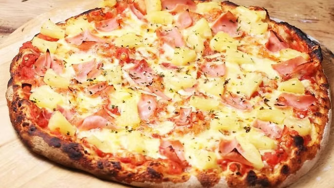 Sauce tomate, mozzarella, jambon cuit, ananas, olives