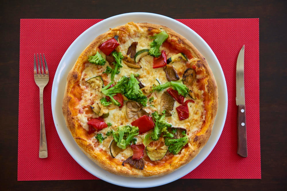 Sauce tomate, mozzarella, jambon cuit, salami piquant, ail, câpres
